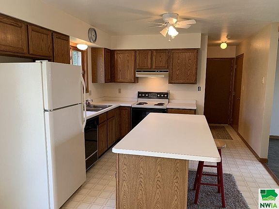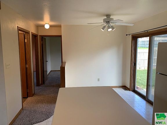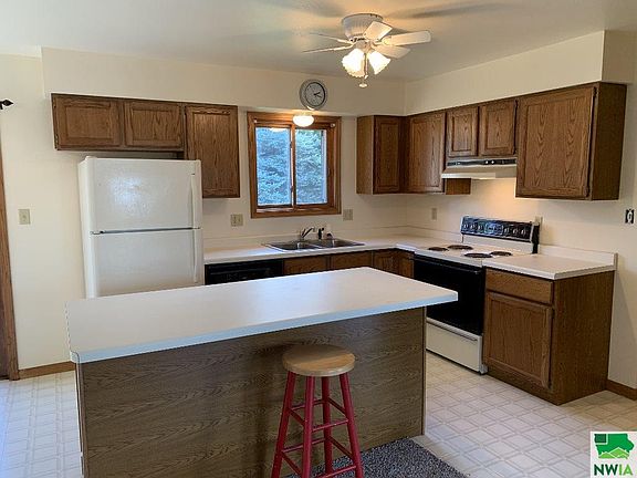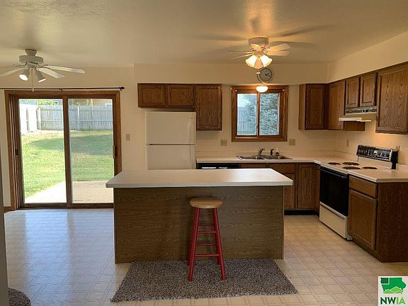 Ranch style home with double attached garage. Newer paints and flooring on the main level. Kitchen features oak cabinets, an island with a snack bar and sliding door onto the back patio. Fire pit built in the backyard in 2019. Large living room and washer dryer on the main level in the half bathroom. Full block unfinished basement, gas furnace and central air. Large fenced in backyard, just a couple blocks south of Le Mars Community school and a couple blocks west of Kluckhohn. Radon mitigation system installed in 2020 as well as recessed lights on the front of the house. Red oak tree planted in the front yard in the fall of 2020. Appliances include a garbage disposal, stove/oven, refrigerator, dishwasher, washer and dryer.