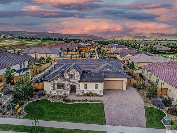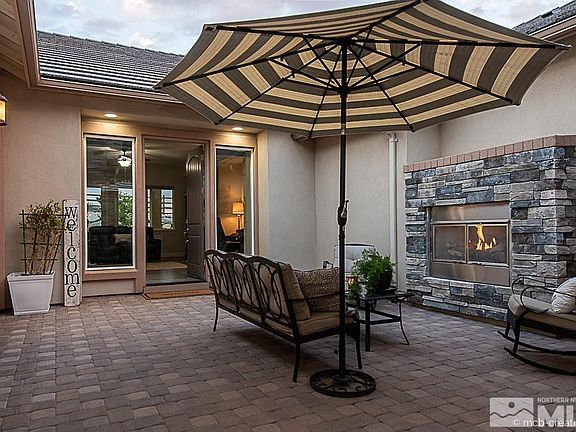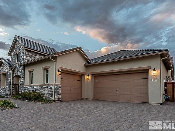 Contingency Escrow.. please show . Montana at Genoa Lakes Ranch! Enter this residence through its quaint courtyard patio complete with gas fireplace. French doors from the patio to the homes interior make for al fresco living -enjoy Genoa's fresh mountain air from the formal dining room! This single level(EST)2820 sq.ft home boasts 3 BD/2.5 bath, which means there is room for everyone. Enjoy a cozy, but generous feel in the Master suite, complete with gas fireplace see more.., Gorgeous Master bath with shower and double vanity/ sinks, walk-in closet and French door accessed to rear patio. Second and Third bedrooms are connected by Jack and Jill bath. Beautifully fenced and landscaped back yard views bring the outdoors in... The open concept living area leads to a spacious kitchen with upgraded custom backsplash tile. Walk - in pantry, coffee bar/ butler's pass -through, and expansive island for countertop dining in addition to the eat in kitchen area. The 3 car garage is currently configured to accommodate a home gym... could be used as a shop or studio or simply more parking or storage. Big sky Carson Valley views await you.