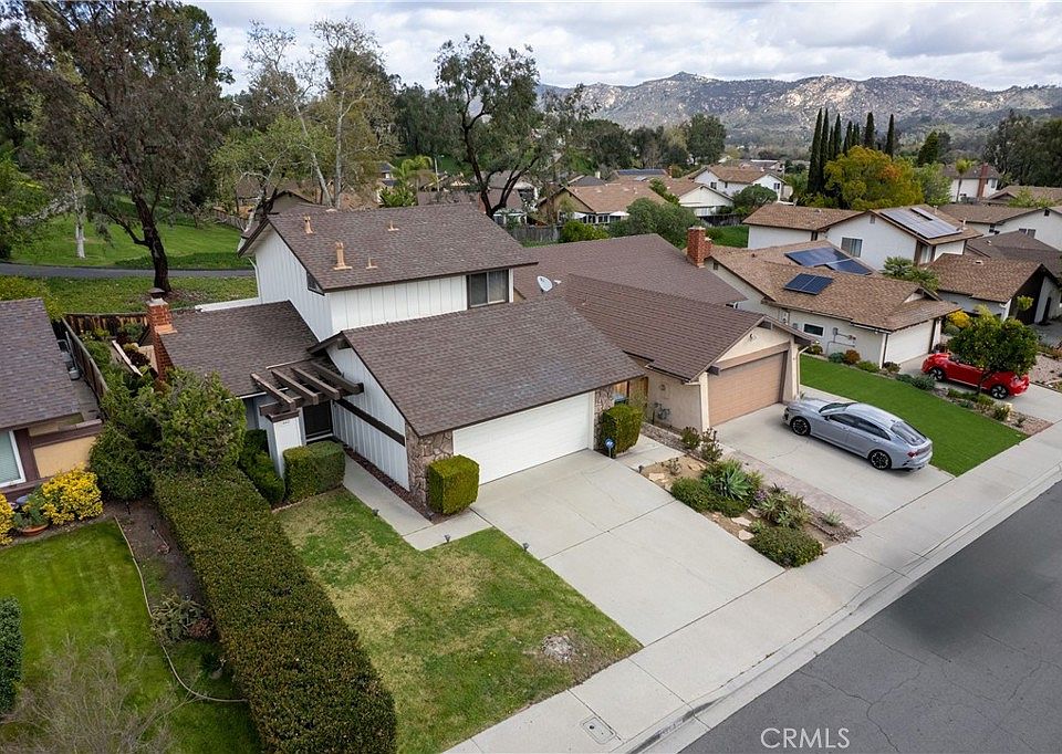 Beautifully upgraded turn-key home, with private greenbelt view, and direct trail access from the backyard, leading straight to the community pool, within minutes from the I-15. Step through the entrance into the living room, where a fireplace and large windows with courtyard views create a bright and inviting space. The open flow leads into the family room and remodeled kitchen, featuring granite countertops and refaced cabinetry, as well as LVP flooring throughout the main level; a remodeled guest half-bathroom adds convenience. The backyard patio features hardscaping with pavers and concrete, a dedicated garden area with plants and fruit trees, and a patio cover providing ample shade; the backyard also features a gate with direct access to the trail network and green belt. Upstairs, the primary suite boasts expansive greenbelt views, an upgraded en-suite bathroom with a walk-in shower, and a spacious walk-in closet. Two additional bedrooms, along with an updated full bathroom, complete the upper level, which is finished with plush carpeting for added comfort. Located in a desirable community with easy highway access, residents enjoy two pools and scenic walking trails throughout.