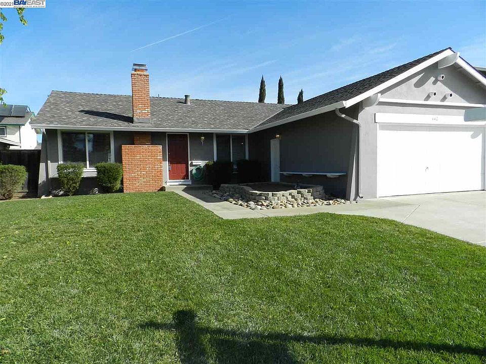 Charming starter home in Somerset neighborhood of Livermore. Hardwood floors in dining and bedrooms, new carpeting in living room and hallway, new vinyl plank flooring in guest and master bath. Hall bath updated with tile and master bath updated with marble shower, new shower valve and new shower door. Central Heating and Air w/Nest Thermostat, ceiling fans, fireplace, dual pane windows through-out, granite counters and updated kitchen with soft close drawers, inside laundry, oversize 2 car garage, auto sprinklers in front and back, large spacious yard and more. New interior and exterior paint. Call this home and enjoy the short walk to grade school, minutes to Middle and High School, Downtown, Freeway, ACE Train, trails, SF Outlet Mall and BART.