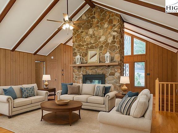 Stunning Mountain Retreat on Signature Golf Hole with Fairway & Lake Views. Welcome to your dream mountain escape, perfectly situated on #12 of High Meadows Golf Course. This home offers the ideal blend of rustic charm and modern comfort, featuring an open-concept great room with soaring cathedral ceilings, hardwood floors and glass doors that lead to a spacious deck - perfect for entertaining or simply taking in the panoramic views. The heart of the home is the updated kitchen, complete with brand-new appliances and a seamless flow into the dining and sitting areas, making it the perfect space for gatherings large or small. The primary suite, laundry room and half bath are conveniently located on the main level. Downstairs, you'll find 3 freshly painted bedrooms, 2 full bathrooms, and a large den with a classic wood-burning fireplace. Whether you're looking for a full-time residence or a seasonal retreat, this move-in-ready home is just a short drive from the Blue Ridge Parkway, Stone Mountain, the New River, and numerous award-winning wineries. Centrally located - only 1 hour from Winston Salem, 1.5 hours from Charlotte, and 2.5 hours from Raleigh. . Come experience mountain life at its finest! Seller to offer a $8,000 allowance to have exterior painted with an acceptable offer