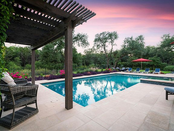 This home is an invitation to live beautifully, where craftsmanship, privacy, and lifestyle converge. No detail was spared in creating this breathtaking residence. Every detail has been carefully considered, with soundproofing throughout the home, electronic shades, full-home audio, commercial-grade doors for seamless indoor-outdoor living, and a whole-house generator, ensuring security and comfort. The chef’s kitchen is both functional and elegant, featuring Wolf appliances, dual dishwashers and ovens, a pot filler, griddle, a farmhouse sink, and a butler’s pantry with wine refrigerator and custom storage. The primary suite is a sanctuary, offering remote-controlled shades, dual walk-in closets with natural light, custom built-ins with a center island, and a spa-like bath highlighted by a chrome-plated clawfoot tub, walk-in shower, dual vanities, and intuitive lighting. Beyond the primary suite, the home’s secondary bedrooms embody the same thoughtful design. Each one is remarkably spacious, paired with a beautifully appointed bath. A grand media room offers versatile living, perfect game lounge, or creative studio. With its generous scale and thoughtful design, it could seamlessly transition into a 4th bedroom if desired. Step outside to your own private resort: a saltwater pool and spa with landscape and solar lighting, lounge areas shaded by a pergola, and an outdoor kitchen with grill, refrigerator, ice maker, and fireplace. Phantom shades enhance comfort, while wrought-iron fencing and lush landscaping frame an unparalleled setting of privacy and greenbelt views. With architectural approval, the generous .65-acre lot allows for the addition of a detached casita, perfect for extended family, private guest quarters, or a fully outfitted retreat. This flexibility enhances the home’s already remarkable lifestyle, offering the opportunity to expand while preserving the serene setting and greenbelt views.