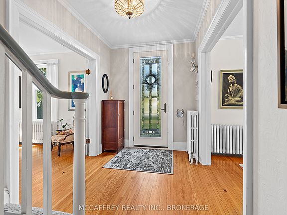 Step into timeless elegance with this stunning 2-storey brick home, boasting 126 feet of serene waterfront on the Napanee River. From the moment you enter the welcoming foyer, you're greeted by a sweeping wood staircase, original hand-textured plaster walls, and soaring ceilings that set the tone for the character and charm throughout. To the right, a sunlit living room with a wood-burning fireplace invites cozy evenings, while a stone-framed den with wall-to-wall windows creates the perfect office or reading retreat. On the left, the spacious dining room flows into a gourmet kitchen with an island and walkout to the back deck ideal for entertaining. A convenient side entrance connects to the attached brick garage, insulated and upgraded in 2025. Upstairs, the primary suite offers a peaceful haven with a walk-in closet and a spa-inspired 5-piece bathroom featuring a soaker tub and shower with stunning river views. An additional bedroom and a versatile third bedroom or office provide flexible living, with the option to expand further. And a sleek new 3-piece bathroom completing the upper level was added in 2025. Rare for its era, the fully finished lower level includes a family room, home gym, spacious laundry room, and abundant storage, including the original pantry cellar. Outside, 2025 brought thoughtful updates with fresh exterior upgrades and professional grading to enhance both curb appeal and peace of mind. A large deck with screened-in gazebo invites gatherings, while mornings begin with breathtaking sunrises over the water. Dock your boat or cast a line from your private dock, or simply enjoy the river breeze in your backyard retreat. Set on municipal services and just minutes to downtown Napanee, VIA Rail, and Highway 401, this home blends heritage character with modern upgrades and an extraordinary riverfront lifestyle waiting to be yours.