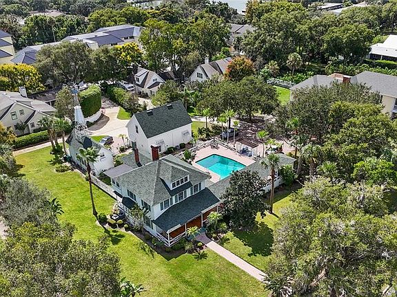 Welcome to your opportunity to continue the tradition as an admired bed and breakfast, or write your own story as a private family estate only steps from historic Downtown Mount Dora. The historic William Watt House, circa 1906, is currently operating as the Grandview Bed and Breakfast. This residence has been meticulously cared for, and all of the original features have been preserved throughout the residence. A large and inviting front porch, built with Cypress Wood from the local mill, welcomes you into the 3-bedroom, 3-full bathroom and 1-half bathroom main home. Original yellow heart pine floors, custom millwork, built-in bookcases, and two fireplaces, one being a Tiger Oak fireplace, creates a warm and inviting ambiance. The remodeled kitchen features historically inspired cabinetry, spacious countertops, and upgraded stainless steel appliances. The dining room overlooks the wrap around porch into the pool and extended patio area, which is ideal for entertaining and additional outdoor living. Upstairs, you will discover more of the historic charm, such as original light fixtures and cedar closets. The bedrooms offer beautiful views of the oversized pool and patio area, as well as incredible sunset views. Beyond the main residence, the brick paver patio leads to the 2-bedroom, 2-bathroom Windmill Cottage, a cherished Mount Dora landmark with Juniper white cedar vaulted ceilings, French doors, and bamboo floors. The Windmill’s 1930’s original frame remains intact, serving as both a nostalgic centerpiece and a unique architectural detail that you cannot find anywhere else. The Carriage House, built in 1996, adds exceptional flexibility with a ground-level guest suite with its own private entrance. Additionally, the upstairs of the Carriage house features a bedroom, living room, full kitchen and full bathroom, all with original bamboo flooring. This space is ideal as the Owner’s Quarters, or serves as an additional space for multi-generational living within a family estate. This building features a 3-car garage, and is steps away from the large outdoor parking area tucked behind the long driveway. Arches, and charming outdoor spaces create an ideal setting for relaxation or grand-scale entertaining, all situated courtyard style around the private saltwater pool. Just a short stroll from Downtown Mount Dora’s boutiques, restaurants, galleries, parks, and Lake Dora, this property captures the essence of history and all of the characteristics that make Mount Dora special. Offered turn-key furnished in the Main Home and the Windmill Cottage, this is an extraordinary opportunity to own one of Mount Dora’s most admired historic homes. In addition to its unique location in Mount Dora, known as the #1 festival city in all of the United States, The Grandview is also located only 45 minutes from Disney, Universal Studios, Seaworld, The Airport and The City of Orlando. This property is unique, because it is zoned for both commercial and residential. Call today to schedule a private tour.