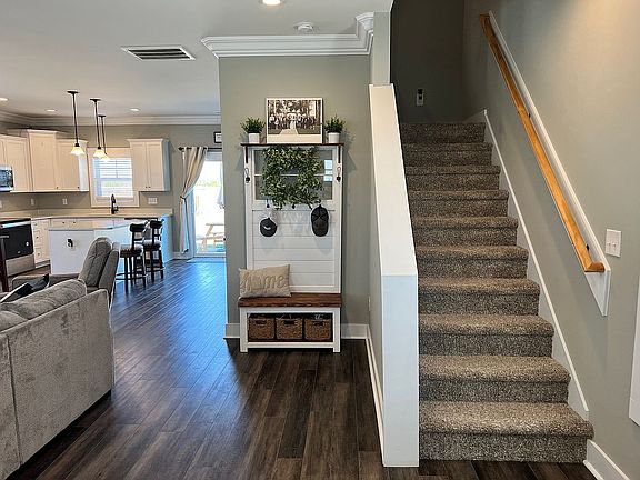 Welcome home! This like new home that sits on almost a full acre with a fenced in yard and 2 car garage is ready for you! The downstairs features an open floor plan with a fire place, LVP throughout, a large walk in pantry, stainless steel appliances, quartz countertops, and a half bath. You will find crown molding throughout the home. As you move upstairs, you will find a large master bedroom with trey ceilings, a walk-in closet, a stand alone shower, and dual vanity. There is also 2 more bedrooms and a guest bathroom upstairs. The house is located in the gated community of The Highlands at Queens Creek which offers a community pool, playground, basketball court, and walking trails. Conveniently located near Camp Lejuene, Swansboro, and great beaches!