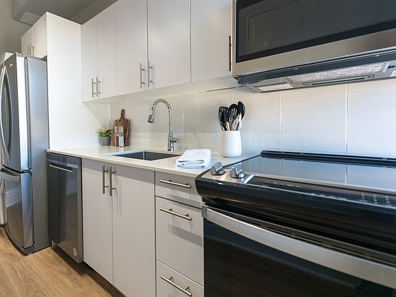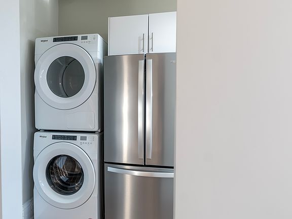 - Individually controlled heating and air conditioning with in-suite heat pumps- Luxury vinyl plank flooring throughout excluding bathroom(s)- Ceramic tile flooring in bathrooms- In-suite laundry featuring Whirlpool front-loading washer and dryer- Bell Fibre Unlimited high-speed internet included at a promotional rate- Brand new Whirlpool stainless steel appliances including fridge, slidingin stove with selfcleaning oven and airfryer function, dishwasher with quiet power motor, OTR microwave with venting system exhaust fan- Modern high-quality flat panel kitchen cabinet with soft close hinges- Custom Caesarstone kitchen counters- Stainless sink with single lever faucet with pullout spray by Sterling (a Kohler company)- White subway tile backsplash from countertop to the underside of upper cabinets