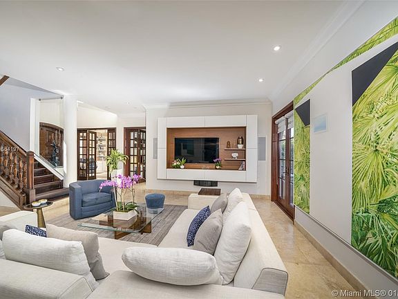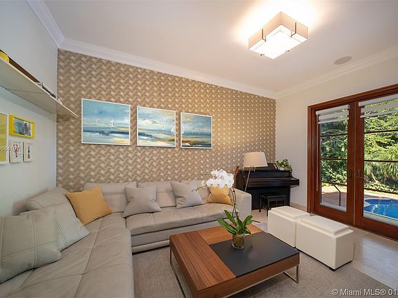 REMARKABLE HOUSE. REMARKABLE LOCATION. REMARKABLE PRICE! Contemporary two story perfection located within walking distance of schools, houses of worship, Village Green and restaurant/boutiques. 5 bd., 4 ½ baths with master and three bedrooms upstairs and l ½ on the first floor, along with living, office, den, formal dining, and fully equipped kitchen. Tropical undercover entertainment area and heated saltwater pool. Impact windows, security system with 6 cameras with app access, auto system throughout, sauna. Exquisite Colombian cherry wood accents throughout. Beautifully landscaped with multiple mature palms. One of a kind and will go soon. 24 hr notice.