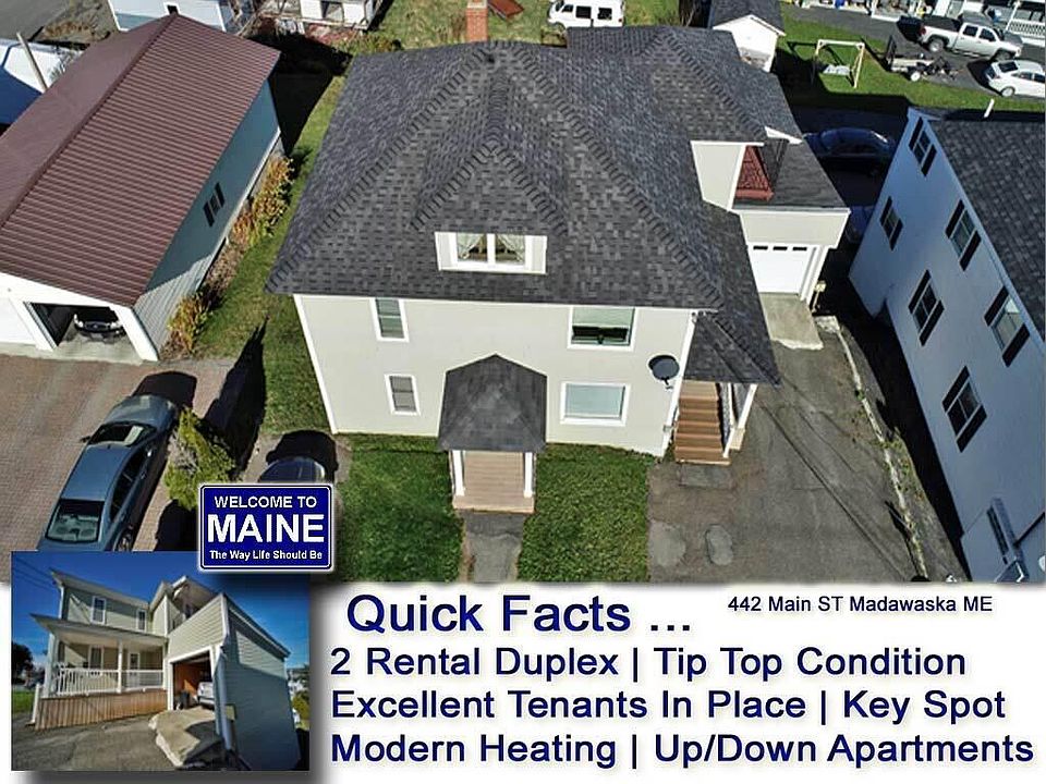 Quality Tenants, Well Build Duplex A Short Walk From Everything Friendly Small Town Madawaska Offers. Ruggedly Built 1951 2 Family Rental Apartment House Built To Be An Income Generating Property. Not Cut Up, Each 1st & 2nd Floor Apartments Are Carbon Copy Layouts. Lots Of Sunshine Hits The Front Of This Steadily Updated/Renovated Northern Maine Investment Property. Attached Garage In 1st Floor Rental. Side Porches On Each. Deep, Dry Basement Is Uncluttered, Has Root Cellar, Clean Multi Zone Oil Hot Water Heating. Pair Of New Hybrid Heat Pump Water Heaters. Tenants Pay Own Electric. Town Water, Sewer. Tip Top, Neat And Clean Long Term Tenants In Place. One For 15 Years, Other For 10 Years. No Turnover, No Wear And Tear Here. Pride Of Ownership And No Job Jar. 2 Unit Rental Investment Property Better Built And Kept In A High State Of Maintenance. Looking For No Fuss No Muss Apartment House That Pays For Itself? Reach Out, Call, Click, Connect. Local Lending Works Best. Come Tour Friendly Small Northern Maine Aroostook Town Of Madawaska. Video. Near Canada. No Better Place To Live Than In 'The Valley', The 'Crown Of Maine'.