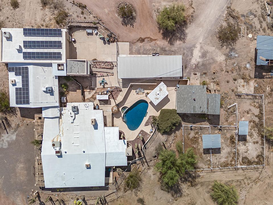 Inside, you're welcomed by the warm glow of three fireplaces, each providing the perfect backdrop for cozy nights spent with loved ones. If you're a foodie, you'll love the wood-burning pizza oven—perfect for crafting homemade, artisanal pizzas with your own personal touch. With three kitchens, including one in the mother-in-law quarters and another in the separate casita with a full kitchen, you'll have ample space to cook and entertain guests. The main kitchen is a chef's dream, offering sleek granite countertops, built-in appliances, a convenient serving window, and a peninsula with a breakfast bar. The spacious primary bedroom showcases plush carpeting, direct outdoor access, and closets with mirrored doors. For ultimate privacy and convenience, each bedroom in this home has its own bathroom! Enjoy your own personal backyard oasis with a sparkling pool, the perfect spot to relax and soak up the sun. The property also features a massive garage/shop with an industrial car lift, providing abundant space to work on vehicles or extra storage. With five spacious bedrooms, including a detached studio-style guest house, you'll have plenty of room for hosting loved ones. The real showstopper? The astonishing views of the Superstition Mountains will take your breath away every day. Plus, you'll appreciate easy freeway access just one mile away. What's not to love about this unique blend of comfort, space, and natural beauty? Inquire today!