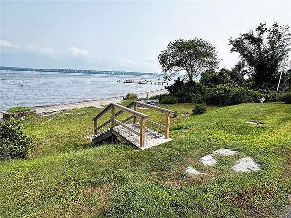 Immerse yourself in the essence of coastal living with this delightful home located on Narragansett Avenue on Prudence Island's East Side, offering stunning water views. Take a leisurely stroll to the iconic Prudence Island Lighthouse and Sand Point Beach. What sets this property apart is its unique ownership that extends across the street to the high tide mark – a rare feature on Narragansett Avenue. Enjoy your private beachfront yard and relax in the spacious open layout of the home with cathedral ceilings. Almost every room provides a view of the water! Unwind on the expansive front deck overlooking the East Passage of Narragansett Bay and the Prudence Island Lighthouse. This charming home features 2 bedrooms, a bonus room, 1 bathroom, electric heating, and a wood/coal stove. The primary bedroom occupies the entire second floor and includes a large private deck with water views! Witness the sunrise over Mount Hope Bridge, offering year-round living in this sought-after location.