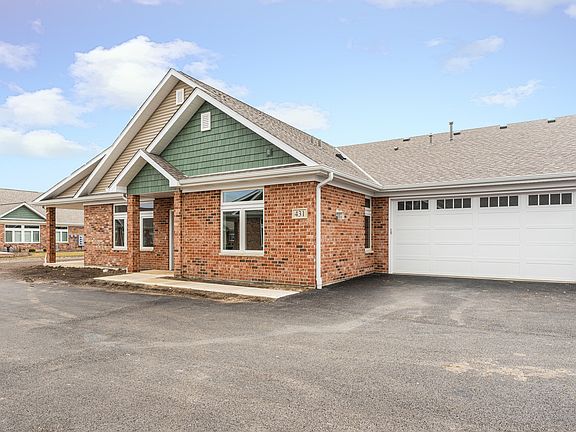 NEW OPPORTUNITY at Riverbend 55+ Community. This 2 bedroom, 2 full bath, over 1800 sq. ft., ALL-BRICK, RANCH condo has a sunroom, a covered patio & 3-car garage which has a 2 car tandem space. Brand new clubhouse with indoor pool to be completed 2023, rendition attached. You will find true old world CRAFTMANSHIP rarely seen anymore showcased with modern farmhouse style custom details such as chair-rail high wainscoting in dining area and sunroom and oversized solid wood trim, windowsills, & crown molding throughout. The very open floor plan has 9-foot ceilings and a vaulted sunroom ceiling. You will love the marvelous kitchen featuring quality, high-end Brakur Custom Cabinetry with under-cabinet lighting, quartz countertops and a large island where there can be seating for 4 to gather around. There are Pocket doors between mud room/hall and bedroom. French doors leading to the office. The main bedroom suite has a stunning tray ceiling with crown and additional picture frame molding; large main bath has double sinks, ceramic flooring, 9' 6" x 4', no-step, ceramic shower with teak bench; linen closet, and huge, 10' x 8', walk-in closet. The covered patio can also be enhanced later, if desired, to a screened patio or 3 season room.