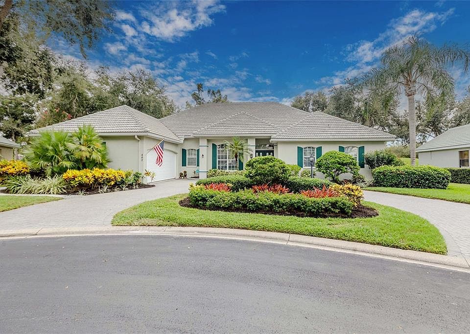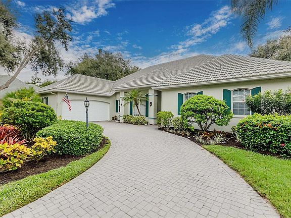 Elegant Florida Living in a Private Gated Golf Community. Nestled at the end of a peaceful cul-de-sac in The Reserve, one of Venice’s most beautiful sought after gated golf course communities. This beautifully maintained home offers the perfect balance of refined living, modern upgrades, and effortless comfort. The property provides rare privacy, elevated design, and peace of mind — ideal for those who expect more from their home. From the moment you arrive, you're greeted by a custom paver circular driveway—reset, stained, and sealed in 2022 for a polished first impression. In 2024, the community roads were fully redone and sealed, and in 2021, a hurricane-rated garage door was installed to meet today’s highest standards of safety and design. New tile roof installed January of 2025 in neutral gray shade to match the paver brick driveway. This elevated lot was thoughtfully built up at the time of construction for superior flood protection and drainage, while a well-fed irrigation system keeps the lush landscape vibrant. The left corner of the lot was thoughtfully planted with native Florida vegetation, enhancing both privacy and ecological integrity. It provides a large side yard full of shade, beauty and privacy. It’s rare to find a home with both a golf course view and a large private yard. Inside, every detail was thought out with both quality and intention. High tray ceilings throughout, coffered ceiling in the den, crown molding, several walk in closets, and built-in features and storage will show that this home is truly one of a kind. Custom built-in window seating in the kitchen offers convenient places to tuck away pool towels or holiday decor. Built in entertainment center in family room features an 80-inch tv, magnetic panels that lift away to hide wires and connected devices, as well as storage and display options. There is an additional storage closet on lanai as well as three closets in garage to keep all of your work and play items organized and away when not in use. The primary suite bathroom was fully redesigned in late 2021, featuring a custom built double vanity with quartz countertops, elegant basin sinks, fountain-style faucets, and a built-in seated vanity area—perfect for a tranquil start to your day. Wide plank wood-style tile flooring (2020) flows through the kitchen, great room, and laundry, adding warmth and cohesion to the living spaces. The den features brand-new tile 2025, while the primary bedroom carpet was just updated in 2025 as well. Additional features include a Moen smart water detection system, newer water heater, large A/C unit (5 years old), and all appliances replaced within the past 5 years, ensuring efficient performance and contemporary style. The pool was recently re-screened as well and rust proof bolts added to ensure integrity of the structure. The Plantation offers easy access to golf, tennis, pickle-ball or social activities. Location is convenient to beaches, restaurants, and all Venice has to offer. Homes like this—with a private cul-de-sac lot, golf course views, spacious yard, and original ownership spanning 23 years—rarely come to market. Every detail has been carefully curated, offering move-in-ready ease and enduring quality in one of Florida’s most desirable communities. Don’t miss your chance to experience elegant, effortless Florida living at its finest.