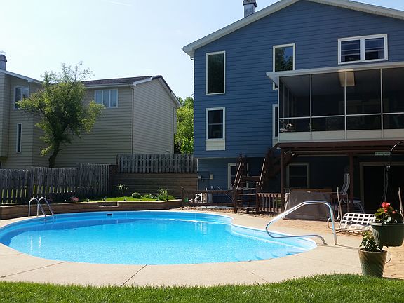 This beautiful home features many updates including a kitchen w/ granite counter tops, a new roof, porcelain tile, and garage doors. Screened-in porch off kitchen. Stairs down to patio and beautiful pool area where you can experience the serenity of a country-like setting while having the convenience of the city out the front door. Main floor great room boasts 17 ft. ceilings and fireplace. A den/office also on main floor. The updated basement adds approximately 800 sq ft plus plenty of storage space. Just minutes from shopping, restaurants, parks, and highway access. Additional Details: • 2,216 sq ft plus full basement • 4 bedrooms • 2 bathrooms, 2 half bathrooms • 2 car attached garage • 20,000 gallon in-ground swimming pool $179,900 Viewings by appointment only. Send us a private message or call