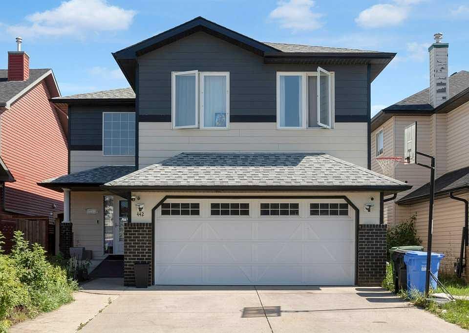 Welcome to 442 Saddlecreek Way NE, a rare opportunity in the vibrant community of Saddle Ridge. This spacious two-storey home offers a total of nine bedrooms, making it ideal for large or multigenerational families as well as investors seeking strong rental potential. The thoughtful layout includes five bedrooms on the upper level, two bedrooms on the main floor, and a bright two-bedroom illegal basement suite with a private side entrance and shared laundry. The main level features a generous kitchen with three pantries and plenty of counter space, creating the perfect gathering place for family meals and entertaining. The open living and dining areas are complemented by a cozy fireplace, while the oversized double attached garage provides additional convenience. The primary suite includes a jetted tub and separate shower, offering a private retreat within the home. Situated on a large rectangular lot with extra parking, this property is only minutes from the Saddletowne C-Train station, shopping, and community amenities. Families will appreciate having Saddle Ridge School (K–4) nearby for younger children, as well as Nelson Mandela High School (Grades 10–12), a modern facility serving the area’s older students. With its flexible floor plan, rental income potential, and close proximity to schools and transit, this property presents endless possibilities. Whether you are looking for a home that accommodates multiple generations or an investment with strong returns, 442 Saddlecreek Way NE is ready to welcome its next owners.