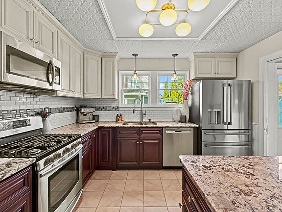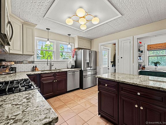 Fall in love with this turn-key 4-bedroom Colonial located in the highly desirable Wolcott Hill neighborhood. This charming home is filled with character and thoughtfully updated, just unpack your bags and move right in! The remodeled kitchen features granite countertops, an eat-in island, newer appliances, stylish lighting, and a fantastic pantry, making it a true focal point for everyday living and entertaining. The formal dining room is perfect for gatherings, while the front-to-back living room offers a cozy wood-burning fireplace, elegant French doors, and large windows that fill the space with natural light. A beautifully remodeled full bath and a cozy sunroom with views of the new patio and fenced-in backyard complete the main level. Upstairs,there are four generously sized bedrooms, another, updated full bathroom, and ample closet space. There is also a huge walk-up attic offering endless potential for additional living space, a home office, or creative studio. The lower level is remodeled and adds a real "wow" factor with a finished space that includes a wet bar, laundry area, and the perfect spot to relax or enjoy your favorite shows. Major updates include new central air, a high-efficiency boiler, all new light fixtures, a new patio, new front steps, and a new shed. The backyard is fully fenced and beautifully landscaped, and the property also features a two-car detached garage. This home has been lovingly maintained and thoughtfully upgraded for today's market.