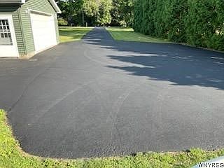 Country living with the convenience of living close to shopping, restaurants and the Village of Hamburg! Set back off the road this unique home is situated on a one acre lot that offers privacy along with endless space for all kinds of recreation. Your rear neighbor is Erie County Fairgrounds! The open floor plan features living room that flows into kitchen, first floor bedroom and luxury bath with jetted tub and separate shower. There is also a first floor laundry/mudroom. Second floor has large bedroom with deck of the rear that overlooks the beautiful grounds. The 720 square foot 2 car garage has electric as well as half bath. Heater in garage does not work. No negotiations will take place until 7/25/23 @12:00 pm.