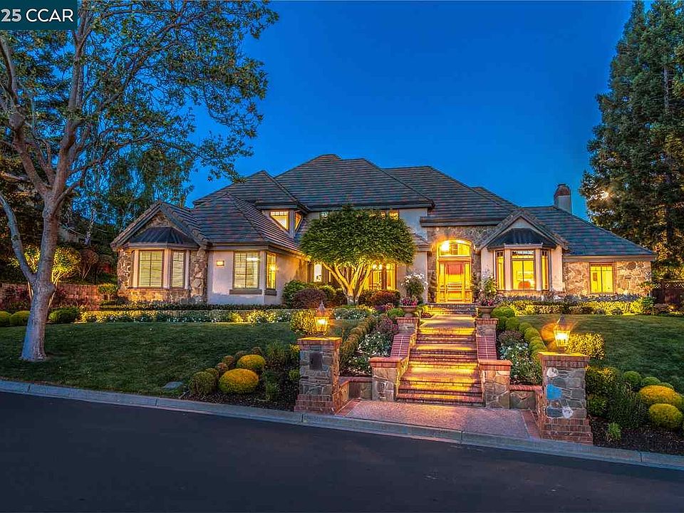 Exceptionally crafted "to-die-for" Blackhawk estate bordering 5th fairway, Falls Golf Course. Meticulously maintained, like NEW. 5112 sf, 2 levels on .39 acres. Extensive millwork, wainscot, crown molding, hardwood & plush carpeted flrs, high ceilings, Andersen windows, French doors, plantation shutters, built-ins, marble. Chef’s eat-in kitchen w/Wolf appls, glazed cabinetry, granite counters, island/bkfst br. Elegant formal rooms. Library w/cherry built-ins. Bonus rm. 4 beds, 4 full baths, 2 half bths. Main-level guest rm. Master w/frpl, private view balcony, steam shower, dual walk-in closets, jetted tub, dual sink vanity. Family rm w/frpl & walk-around wet bar. Dual staircases. Grand curb appeal. Redwood & rose tree-lined side-access drvewy. Peter Koenig designed resort bkyd, pool, spa, waterfall, firepit, outdr kitchen. 4-car + golf-cart garage, 100-gal wtr htr. Dual AC. Near East gate entrance, golf, tennis, fitness ctr., shopping, dining, freeway access, top-rated SRVUSD schls.