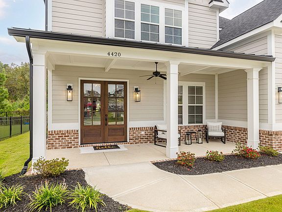 Almost New and Barely Broken in 5BR 4.5BA Home in sought after River Island! OPEN floor plan, main floor Owner's Suite, Formal Dining Room, Kitchen features large island and gas range with a walk-in pantry, 4 bedrooms and 3 baths upstairs - 2 with private baths, and walk-in attic storage. Neutral colors throughout. Covered back porch overlooks a large, privacy fenced backyard that backs up to wooded area for extra privacy,
