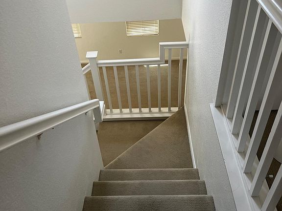 This property is the end unit with large low maintenance backyard. Very quiet and no neighbors on one side. Spacious three bedrooms all upstairs. Downstairs a large living area opens to the kitchen. Washer and dryer hook ups. Attached two car garage and additional two uncovered parking spaces. New Paints! Association provides pool and spa. Tenants pay for utilities.