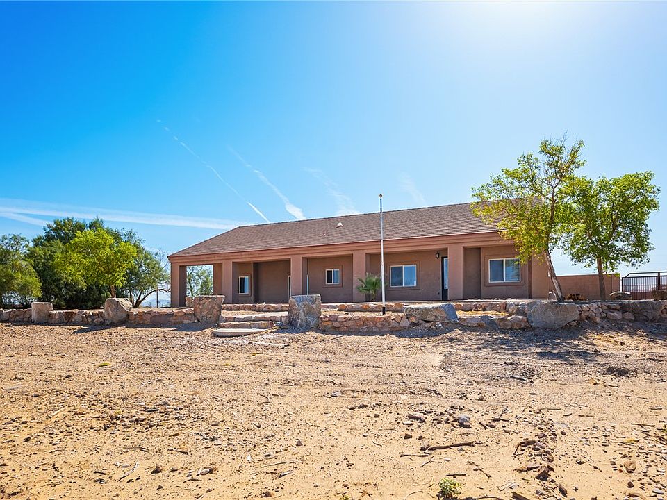 Ideal all year or part time property.  Minutes from off road vehicle trails, Colorado river launch and Avi Casino.   Quality custom built 4 bedroom ranch home and two HUGE Garages, Paid for Solar, private Well, and Breathtaking sunset Views with no west neighbor! . The property with 2.48 flat acres (not in the flood plan) features both a large attached 3 car extra deep garage AND a  massive 40x60 STEEL building, insulated garage/shop with front and rear entrance road,  tall doors, 40+ ft deep bays, rear door for easy pull through, tons of parking Plenty of room for storing your RV or other large vehicles.  Shop equipped with a 30-amp plug for RV, water connection, and two 220-volt outlets for all your needs.  PAID FOR SOLAR for Sustainable Living: The home is powered by 31 solar panels, installed in 2019, providing energy efficiency and significant savings. Plus, the property is equipped with its own well, ensuring reliability and independence. Enjoy panoramic mountain views from the comfort of your home, and take advantage of the open, split floor plan that promotes both functionality and flow.  watch the Avi fireworks show from your covered built in Patios both front and back to keep cool. The rear yard is fenced with block for privacy and ready for you to put in a pool or ???.   All appliances are electric, offering an eco-friendly and low-maintenance lifestyle. Whether you're looking for a peaceful retreat or a functional space for hobbies and work, this property has it all. All the work has been done you can move right in and bring it all!