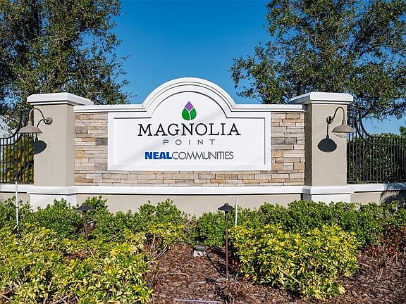 Magnolia Point was built in 2017 by Neal Communities, a gated community, with three enclaves and a total of 111 homes on 54 acres, with Bungalow Craftsman design. This home is in the Sage Terrace enclave and is the Applause model. The second enclave is Willow, and the third enclave is Autumn Fern. Sage and Willow are connected by a walking paths, with five ponds, nestled in a natural setting of woods, meadows, and paths for walking, jogging, running and biking. Located just east of University Parkway, off Lockwood Ridge Road, it has quick and easy access to I-75, the UTC Shopping Mall, Downtown Sarasota, grocery, retail, and medical venues. This home is a three bedroom, three bathroom home with 2070 square feet of air-conditioned space, and 2766 square feet under roof. This is an over-sized lot overlooking the pond and the preserve. As soon as you walk into the front door, you see the water. There is a 7 x 13 covered front porch for relaxing. The front of the home, currently used as the formal Dining Room, could be the Living Room, sitting room, or media room. The guest bedroom, and bath are across the hall. The third bedroom (den/office) is across from the inside utility room. The den/office has a desk set and a Murphy Bed, which both convey with the sale. In the rear of the home is the Kitchen with the separate breakfast eat-in area (bonus Room), and the Master Bedroom, all with water views. The Kitchen Family Room combination gives you all the space to enjoy, entertain and live it up. The Paver rear covered 8x16 patio overlooks the salt water, gas heated pool, the pond and the preserve. The 10 x 20 natural gas heated pool is caged in the caged 20 x 40 paver deck, all overlooking the pond and the preserve. On the pool deck and patio, all of the outdoor furniture and the propane grill convey with the sale (not the Weber). In the garage, the refrigerator and cabinets convey with the sale. The property has natural gas, Kitchen range, a gas hot water heater and heated pool. HVAC system is electric. None of the televisions convey with the sale. The TV is powered by a DISH satellite which conveys with the sale. No fences of any type are allowed. There is a owned Culligan water system for the entire home. There is a Impact pest control system in the walls of the entire home. The irrigation system for the entire subdivision is reclaimed water from the retention pond. All common area landscaping is included in the HOA fees and done by the HOA on a regular basis. Each homeowner is responsible for their own lawn care, and landscaping at their own home.