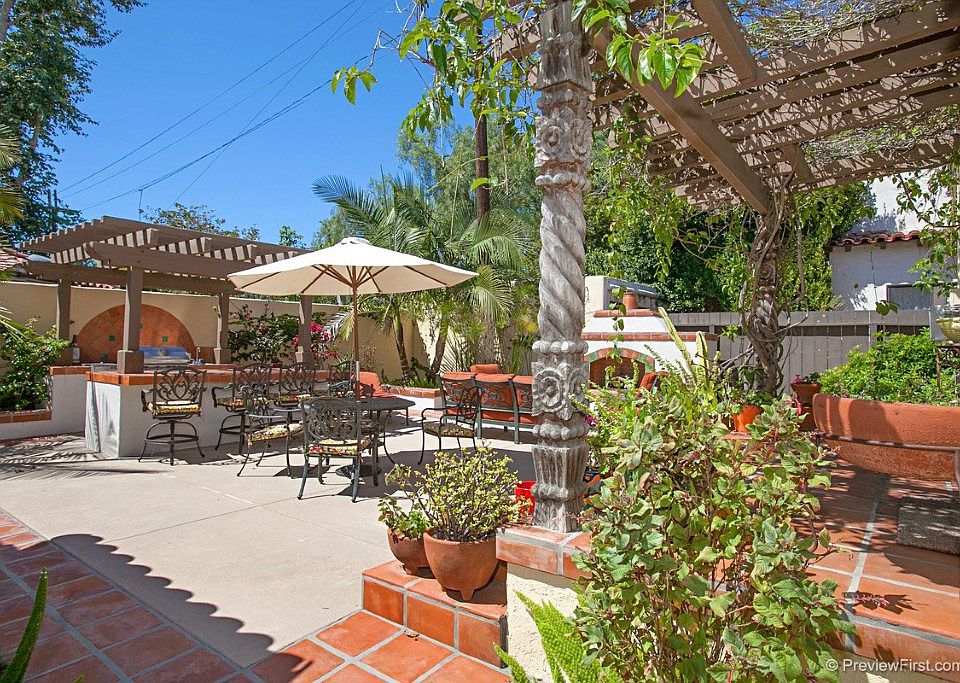 This sunny bungalow features a spacious outdoor kitchen, patio, and a striking outdoor fireplace built just two years ago. Located on a premium street in North Mission Hills, this home is the perfect expression of the California outdoor lifestyle. This two-bedroom, two bath home has beautiful hardwood floors, coved ceilings, floor and ceiling moldings, and a spacious dining room. The kitchen includes two large pantry closets, a Bosch dishwasher, and a Viking Professional 6 burner range and hood.