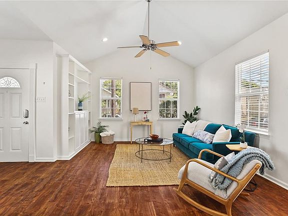 Adorable 3 bedroom 2 bath cottage in Broadmoor! Open living, dining and kitchen with vaulted ceilings, custom built-ins, modern chandelier & great natural light. Two bedrooms at the front share a large bath. Rear primary suite with vaulted ceiling has a great walk-in closet and private bath with ample cabinetry. Spacious laundry room offers extra storage space. Enjoy relaxing year round on your large screen porch! Driveway, nice side yard and rear yard with garden bed and shed. Wonderful neighbors!