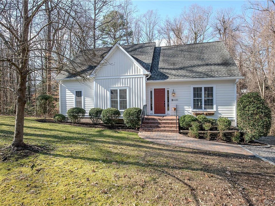 Spacious cottage style home is set on a secluded lot just a 3 minute walk to the James River, Kayak launch and nature trails. The interior features 4 bedrooms and 3 full baths including a First Floor Primary with Luxury En-suite. The large gourmet eat-in kitchen, elegant dining room and bright sunny family room with cathedral ceiling make a wonderful setting for entertaining. Quality materials such as random width heart pine floors, granite counters, solid wood doors, custom trim, custom designer plumbing fixtures and light fixtures add to the turn of the century feel of this one of a kind charmer. Low maintenance Hardiplank siding, low E thermo tilt windows, tankless water heater, Trex decking and professionally designed landscaping and irrigation will afford you plenty of time to explore the James River. Downstairs Basement has over 1800 square feet and rough-in plumbing for a full bath give this home endless possibilities.