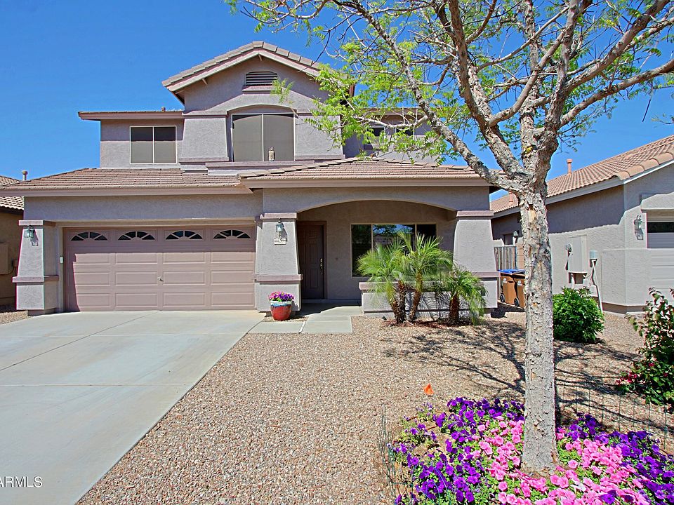 Fresh & inviting 4 Bedroom + Loft, 2.5 Bath home with a Pool in one of Maricopa's premier Fulton Home Communities, Cobblestone Farms. Exterior painted in fall of 2022. Updated kitchen with quartz countertops, attractive backsplash, newer RO system & pull-out shelves. New stainless-steel appliances including a gas range in Fall 2022. Newer washer with gas dryer. Spacious Living/Dining Room. Open style loft and 4 bedrooms are located on the 2nd floor. The Primary Bedroom has an ensuite with a double sink vanity, separate tub, & shower & a large walk-in closet. Entertain your Family & Friends in the lush grass back yard with a full-length patio extension & an inviting pool. The pool pump & filter were replaced in Summer 2023. Garage Door Torsion System Replaced Apr 2024 Enjoy all the Community activities Cobblestone has to offer!