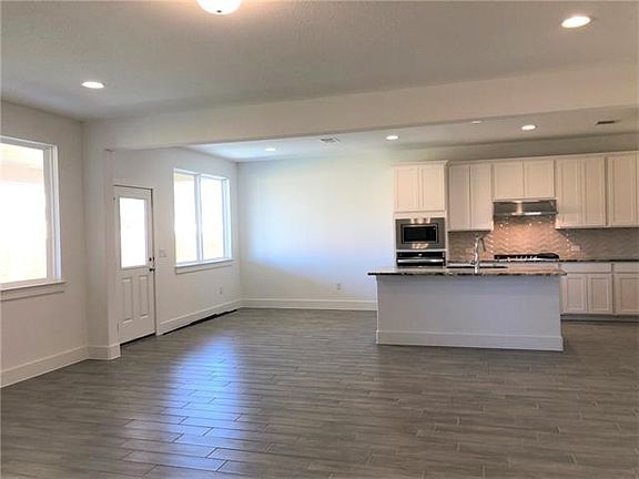 Beautiful curb appeal! 3 sides Brick & Stone, established native oaks at the front & side, and beautiful sun exposure on this south facing corner homesite. Professionally designed décor with white linen shaker style cabinets, 6in contemporary pine trim, oversized master shower, and stylish durability of wood look tile in all common areas. Ending with a 12x22ft extended covered patio.