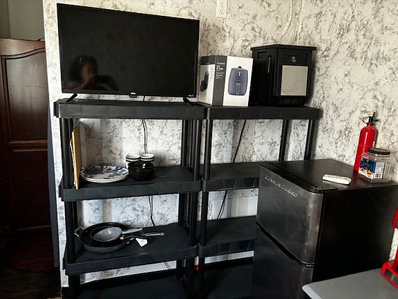 It has no kitchen but has a refrigerator, microwave, toaster oven and hot plate set up on a desk. You wash dishes in the bathroom sink. Good for someone who eats out or gets take-out a lot. We have a peaceful property located a quick 2 miles down from I-20 on the Garden City Highway. Walmart is about 4 miles away for easy shopping and there is a free laundry room on site. The property is quiet because we background check everyone.
