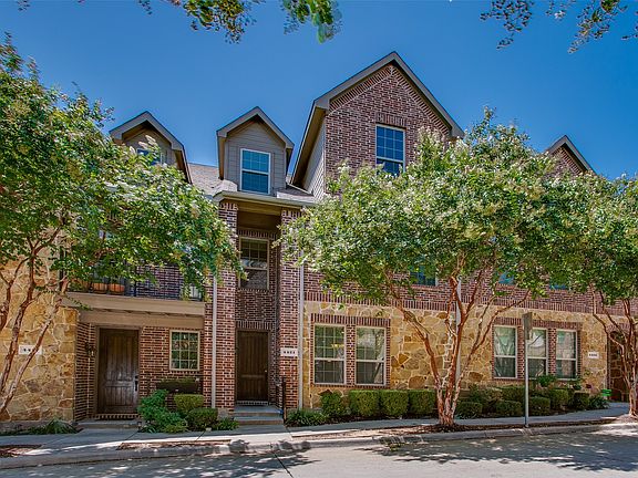 This recently updated townhome is located on an interior lot within desirable The Shops at Prestonwood community. The home features a bright and airy layout with a private balcony, a cozy fireplace and a stunning open kitchen that includes plenty of counter space, barstool seating and storage. The kitchen opens to dining room and living room. The second-floor primary suite offers dual vanities, separate shower and a relaxing soaking tub. Two generous bedrooms are also found on this second level. On the third level, arrive to an second spacious primary suite which includes an en-suite bath, walk-in closet, and direct access to a covered balcony with tree canopy views. This space can also serve as a media room, game room, or home gym. Don't miss the additional storage closet! Community amenities include a pool, fitness center, and walking trails around a scenic lake. The home is conveniently located near Grandscape, The Shops at Legacy, and major highways.
