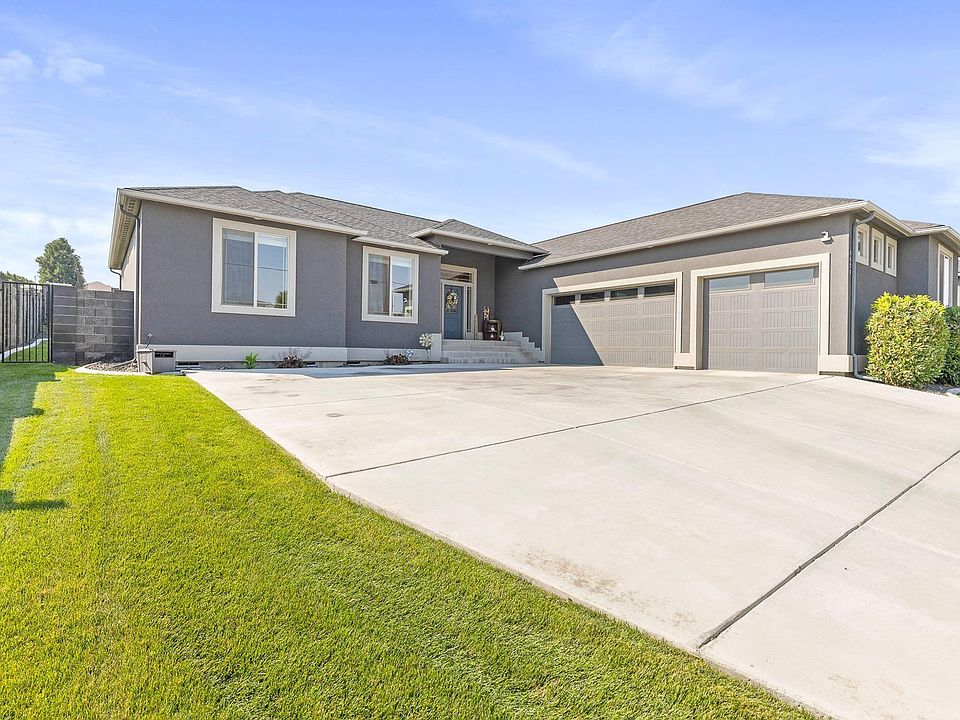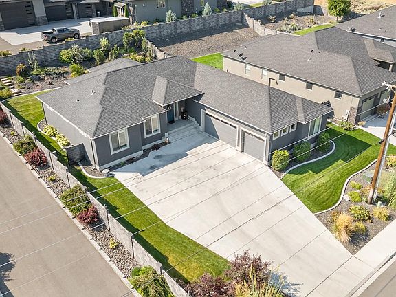 MLS# 287078 Like new custom built single level home with lots of upgrades throughout! This inviting floor-plan is spacious with lots of natural light. Both the great room and master bedroom have vaulted ceilings giving an open feel. Gorgeous hardwood floors run through entryway, traffic areas and all through the kitchen/great room space. The kitchen is a chef's delight with gas range, stainless chimney/hood, oversized island, coffee bar and extra cabinetry has been added in addition to the pantry. Stainless appliances include a double drawer dishwasher making large or small loads a breeze! The master suite has custom wood accents and a luxurious bathroom with double vanities, large walk-in closet and a massive custom tile shower with dual shower heads. The great room has a cozy feel with a gas fireplace with tile surround and custom shelving/lighting surrounding it. The back patio is a relaxing paradise with a professionally landscaped terraced yard, sun shades and even an outdoor tv that stays to relax and enjoy your shows! The yard is fully fenced with built to last masonry fencing and metal gates and don't worry your truck will fit in the deep 3 car garage!