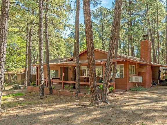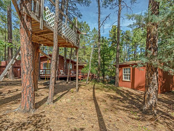 Welcome home to your cabin in the pines. Short drive to downtown, Goldwater Lake and walking distance to hiking trails. Enjoy this three bedroom, three bath home with a fireplace and wood burning stove. Home comes furnished. There is a basketball hoop, tetherball, tire swing and tree house on the property.