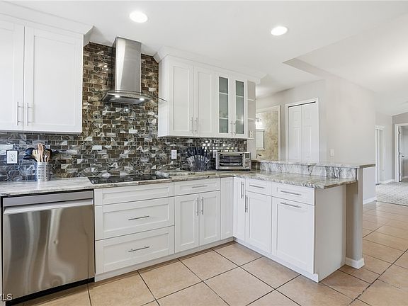 Stunning remodeled home featuring a brand-new kitchen with modern finishes and beautifully updated bathrooms. Offering nearly 1,600 sq ft of living area with an open concept design, vaulted ceilings, and a desirable split-bedroom layout. Impact windows, roof replaced just 2 years ago, A/C only 3 years old, recently painted inside and out and it has tile throughout. This home includes a shed, an extended patio, and a spacious fenced yard. The guest bath already features convenient access for future pool use. City water and sewer with all assessments paid in full, and no HOA fees. Excellent location in SW Cape Coral, near Cape Harbour, Tarpon Point Marina, Schools, restaurants, shopping and more! Move-in ready and beautifully updated!