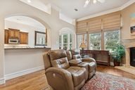 Cast-stone fireplaceJuliette balconyLow-maintenance backyard landscapingHardwood floorsFormal dining roomBuilt-in shelvingHoa-maintained front yard