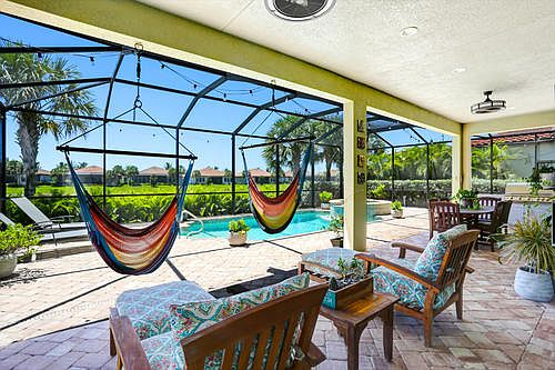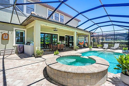 You'll love this stunning WCI 2-story western exposure lake view pool home in the highly desirable family neighborhood of Raffia Preserve. This home features 5 bedrooms plus a den, 4 bathrooms and a 3 car garage giving you 4,073 sq ft of generous open space to move about. Upon entering, you are drawn to the wide open floor plan, high ceilings and picturesque view of your outdoor oasis fully equipped with a pool, hot tub, outdoor kitchen and plenty of space for entertaining. Your gourmet kitchen is nicely appointed with stainless steel appliances, granite countertops with plenty of prep area, large counter-island, 42" cabinets and 2 large walk in pantries. This home boasts a large family room and dining room, 2 private offices and a large upstairs bonus room. Some of the upgraded features are engineered wood staircases and floors throughout the entire second floor, impact resistant glass on all doors and windows, plantain shutters, and ceiling fans. Situated in a friendly gated community in the North Naples award-winning school system, Raffia Preserve amenities include a resort-style pool with lap lanes, a playground, basketball court, fitness center and clubroom.