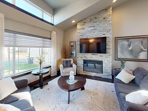 Welcome to this beautifully maintained 4-bedroom, 3-bath home on the highly desirable south side of Sioux Falls! Tucked into a quiet cul-de-sac, this property offers comfort, convenience, and exceptional amenities both inside and out. Step inside to an inviting, open-concept layout featuring two electric fireplaces that create warmth and ambience in both the main living area and lower level. The kitchen, dining, and living spaces flow seamlessly, making this home perfect for gatherings or everyday living. Outside, the home is fully landscaped with trees, shrubs, and thoughtfully designed plantings - complete with a firepit area for evening relaxation. Enjoy mornings or meals on the covered porch, or take advantage of the spacious backyard. Car enthusiasts and hobbyists will appreciate the oversized 3-stall garage, fully heated and cooled for year-round comfort. Located in a welcoming community, the HOA provides amazing perks, including garbage service, access to a community building with a workout room, a community room for gatherings, an outdoor pool, a playground, and basketball hoops - all just a short walk away. This home truly offers the best of comfort, location, and amenities. Don't miss your chance to make it yours!