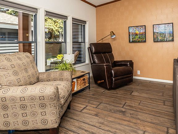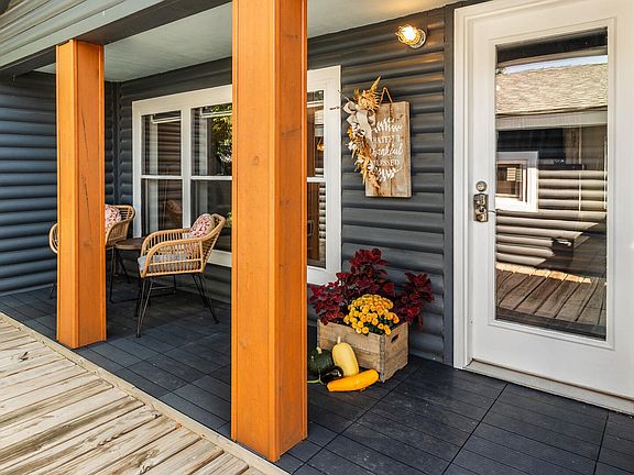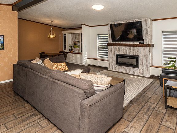 Welcome to this modern cabin retreat located in Century Park! This is not your standard manufactured home which has been updated inside and out! When you enter the home, you will notice the beautiful wood beams, a floor to ceiling electric fireplace and built in storage. There are 3 bedrooms including a large primary bedroom with a private en-suite that includes a soaking tub, separate shower and walk-in closet. There is an additional full bath and laundry. The kitchen has a ton of storage with white cabinets, a gas range, center island and newer appliances (2023) There is a patio door off the eat-in kitchen that overlooks your private oasis! The backyard is so private with the mature landscaping, large deck, underground sprinklers and a garden shed that was converted to a screened in-porch! The home has newer shingles, a new furnace and new central air (2025). There is a double detached garage. This home is truly a must see!
