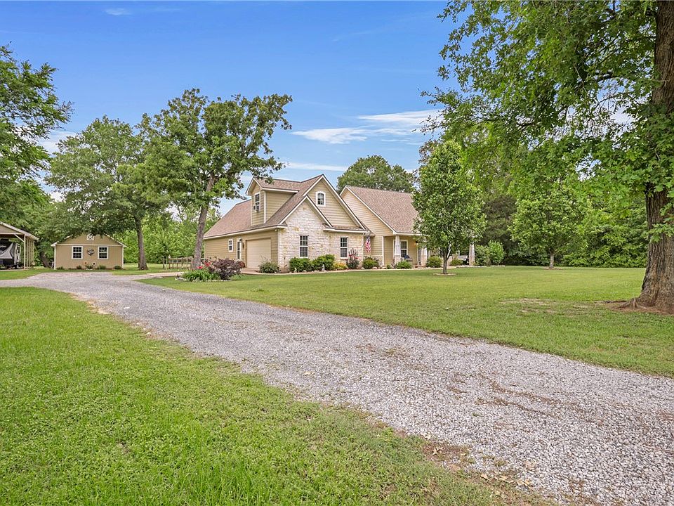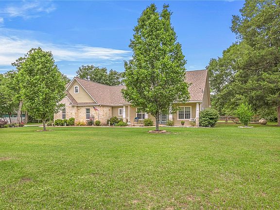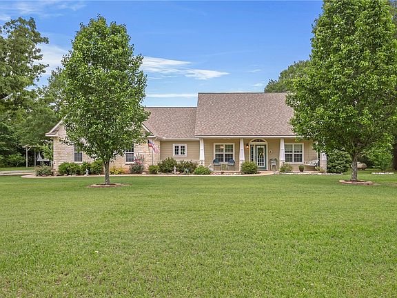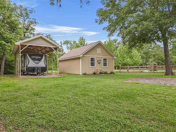 Price Drop! This house is what dreams are made of - where charm, comfort, and function meet. This custom-built 4-bedroom home features a desirable split floorplan and exudes warmth from the moment you step onto the inviting covered front porch. Inside, you'll find a well-maintained interior with wood and tile flooring throughout all common areas, a cozy fireplace in the living room, and a bright, airy kitchen complete with white cabinets, a window over the sink, and a spacious eat-at island. The formal dining room offers the perfect space for gatherings and celebrations. Step outside to find a 24x24 workshop, a large pole barn for RV covering, and a fenced-in yard area that opens to breathtaking, tree-lined view. Whether you're relaxing on the porch or working in the shop, this home is full of space, peace, and promises, a truly special place to make lasting memories.
