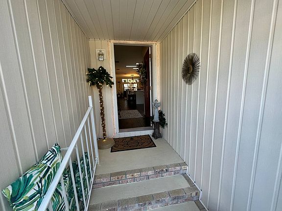 A beautifully maintained home with 2 split bedrooms, 2 bath and office on a quiet street.  As you approach the home you will see the 1768 square foot home and tasteful landscaping, a large garage with golf cart access, a refrigerator and an electric roof vent/fan.  You will find a detailed designed concrete paved driveway and patio.  The entry of the home is an enclosed screened entryway. As you enter the home, you are greeted by beautiful wall to wall luxury vinyl flooring, vaulted ceiling, chair rail, fresh paint and a wooden beam.  Off the entry way is the laundry room with a stainless steel utility sink and extra cabinets for storage.  The kitchen was completely remodeled in 2024.  It has shaker style 42" upper cabinets, soft close drawers and quartz countertops, glass subway tiled back splash with new stainless appliances including convection range, a multi-use microwave, refrigerator and dishwasher.  There are plenty of cabinets with a large center island.  The primary living area is spacious with plenty of room for you to design your beautiful home, plantation shutters, a shiplap accent wall and a ceiling fan. The open concept is great for entertaining your guests.  The guest bathroom has a tile shower with tub and several cabinets.  The guest bedroom has a queen bed, ceiling fan, wall length closet and plantation shutters. The spacious dining room has lots of natural lighting and a beautiful hanging light fixture. The large primary bedroom has a walk in closet, plantation shutters and ceiling fan.  The primary bathroom has been completely updated with a barn door, ceiling fan, double sinks, quartz countertop, custom cabinets, a walk-in door-less shower with seat, room ceiling vent with heater and beautifully tiled floor.  You will find sun tunnels in both bathrooms providing plenty of natural light.  The office area is large with a built-in desk, cabinets and a ceiling fan. The enclosed lanai has tile floor with lots of windows, a ceiling fan and a new exterior door.  From there you walk out to the paved patio surrounded by tasteful landscaping and lots of shade.  The home has a concrete area off the garage for a storage unit and a convenient dog wash.  You will find beautiful newer Bahama shutters for window protection and newer aluminum fascia with gutters and gutter guards.  No need to clean gutters!!