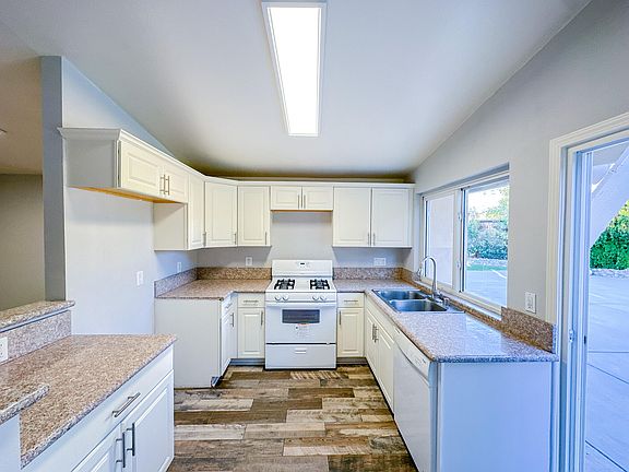 The bathrooms have been nicely remodeled with updated showers. New windows improve both the look and energy efficiency of the home.In the backyard, you'll find a large, private space perfect for relaxing and playing. It includes sturdy block walls, a gated area for dogs, and a concrete slab with a basketball court. The easy-care turf, lovely fruit trees, and colorful roses enhance the outdoor space. There's also a detach patio for outdoor dining, making it great for gatherings. This home combines modern comfort with easy outdoor living and plenty of space for everyone schedule a visit today!