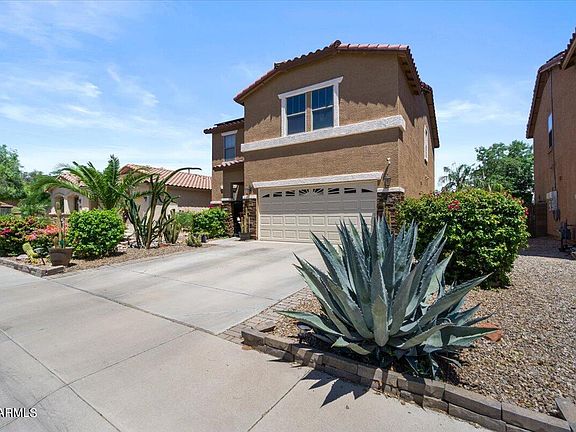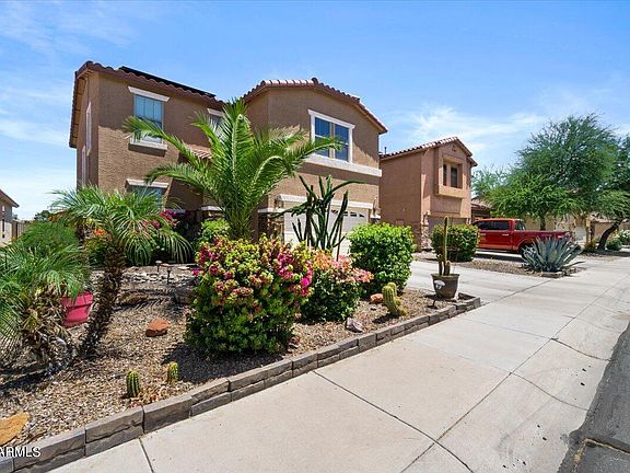 Beautiful 3 bedroom, 2.5 bath, plus loft home located in the desirable Villages at Rancho El Dorado subdivision, of Maricopa. As you enter through the door you can't help but notice the pride of ownership this house has. Updated Vinyl flooring downstairs, plantation shutters in all the right places, stunning kitchen with SS appliances, updated quartz counter tops, white shaker cabinets and plenty of storage space, perfect sized kitchen island. Master suite has a large walk in closet and double sinks, All 3 bathrooms have new toilets. The resort style backyard has a newer 12ft Pergola, is perfect for entertaining, pool parties, a putting green for the avid golfer or just relaxing in the amazing Arizona weather. Lush vegetation and mature orange trees make it complete. Newer insulated garage door. This house has everything you need and more! Don't miss out on the opportunity to own this home. Solar panels will be paid off at COE. Come take a tour!