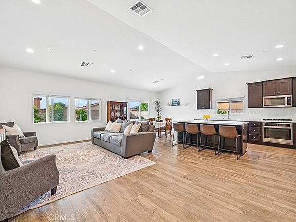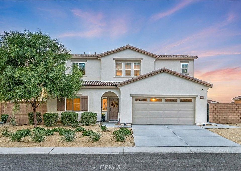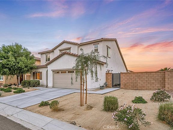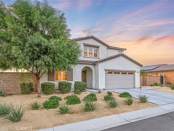 Exquisite like new beauty on a quiet low traffic interior street featuring 4 bedrooms, 3 baths and a custom designed pool size backyard with a massive shady patio cover. This home has it all! Starting with great curb appeal, including mature desert landscaping, enter into an inviting foyer which opens to a stunning great room with vaulted ceilings and views of the expansive backyard. With wide plank engineered wood flooring, recessed lighting and warm neutral paint, the great room has an abundance of space, great natural light, and an overwhelming feeling of convenience and comfort. A large island anchors the entertainer’s kitchen, and this is where the magic happens. With quartz counters, bar seating for 4 or more, an abundance of counter prep and storage space, stainless steel appliances and a large closet pantry, the kitchen is perfect for hosting your next gathering or everyday functionality. Adjacent to the kitchen is a sizeable dining room and beyond the sliding glass door is the oversized covered patio, which offers room for multiple shaded seating areas to relax. A large grass lawn, mature planter beds, three producing citrus trees and a custom paver sitting area in the corner that features a seating wall with great views of the yard looking back towards the house, the big sky and hills beyond. Imagine all the great opportunities for indoor/outdoor living. Back inside, there are two bedrooms on the main level including a spacious primary suite with a dedicated ensuite featuring a dual sink vanity, space for a private vanity set up or possibly a soaking tub, a step-in shower, a privacy water closet door and a walk-in closet. The second guest bedroom, currently set up as a nursery, could easily be an office, den, or craft room. A downstairs guest bath with a step-in shower and an interior laundry room complete the lower level. Upstairs has a large loft and is flanked on either side by spacious guest bedrooms, each with great natural light and large walk in closets. A full guest bath on the upper level making it the perfect set up for a larger household or can serve as a guest retreat.The neighborhood park is just steps away and features a fantastic playground, a large field, and sport courts. Conveniently located minutes from easy commuting access, shopping, dining and entertainment options, and great schools. With an attached 2 car garage, a 2 car driveway and a side yard large enough to store your RV or boat this is the one! Welcome home.