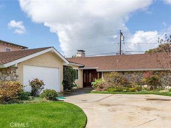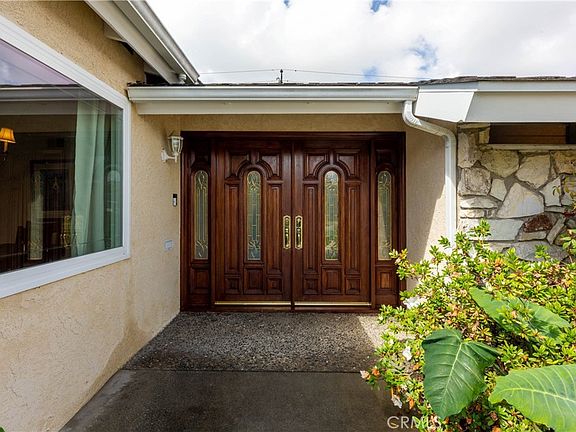 Enter the lush landscaped backyard through sliding doors off both the den and master bedroom and French doors off the family room ..The custom herringbone brick patio is perfect for barbecues and outdoor dining..Both front and backyards are equipped with auto sprinklers on timers and lighting...Additional upgrades include: Milgard double pane windows throughout, Presidential Lifetime shingle roof with R-30 insulation in the attic, complete copper repipe with recirculating pump, newer sewer line, 5 ton Central Air unit and a newer 200 amp panel (equipped for solar!). Also the stucco has been redone with all facia and trim repainted in 2020! The large driveway is great for extra guest parking! Make this wonderfully designed home your own!