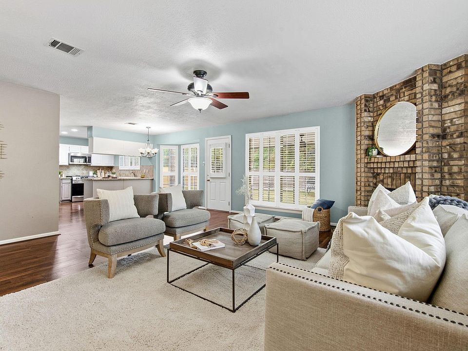 ROOF & FENCE REPLACED in Sept 2025. Beautiful 4 Bedrm home with GREAT CURB APPEAL & NO BACK NEIGHBORS in desirable Mills Branch Village in Kingwood! Zoned to award winning schools, community pool & parks nearby. The home features TONS OF UPDATES, 2 Living areas (one can be an office or flex space if needed). Kitchen has a newer Gas range, Granite countertops, SS Appliances (Fridge Included) & bar area. Open concept transitions to the SPACIOUS Family room w/lovely brick fireplace. Notice the gorgeous flooring throughtout most of the living areas. Convenient 1/2 bathroom with Granite as well on the main floor. HUGE Primary bedroom W/VAULTED ceilings - enough space for a sitting area and/or desk - wow! Private ensuite with double sinks, Jaq tub, shower and walk in closet. 3 additional bedrooms with a full secondary bathroom w/2 sinks and a tub/shower combo. Lovely covered patio - great for relaxing and entertaining. AC 2018/Waterheater 2020/Garage door 2024/New siding 2024 and more!
