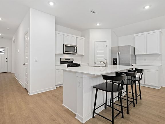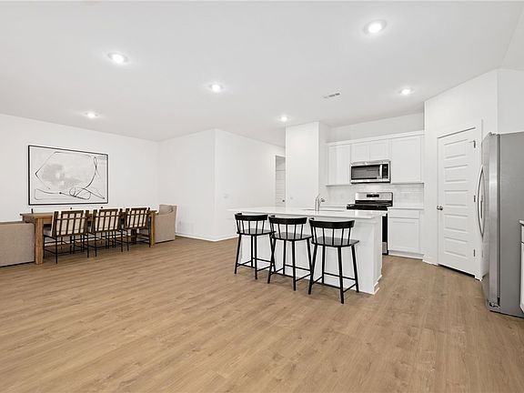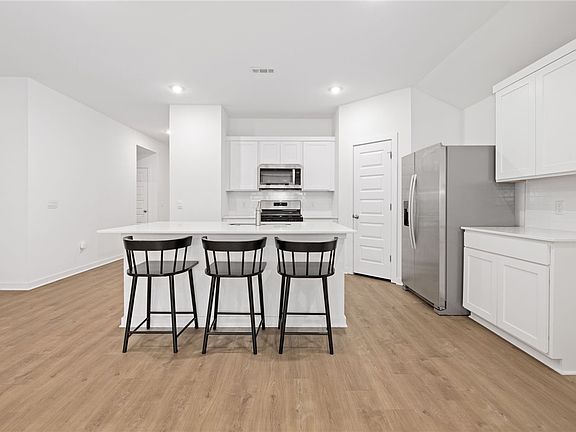 A rare find on the market, this home blends modern design with natural light and an airy, inviting feel. The kitchen features quartz countertops, tile backsplash, custom cabinetry, and a stainless gas cooktop. The primary suite includes double quartz vanities, a walk-in shower with tiled walls, and a spacious closet. Thoughtful touches throughout include ceiling fans in every room, LED lighting, tankless gas water heater, and energy-efficient Low-E windows. Outside you will enjoy the covered back porch, privacy fenced yard, and the exterior is wrapped in LP Smart Siding on all four sides. The subdivision offers a welcoming neighborhood feel with tree-lined streets, community green space, and easy access to parks, schools, and local favorites.