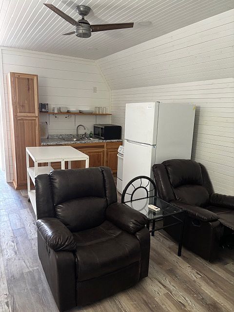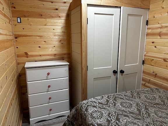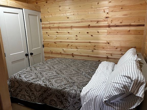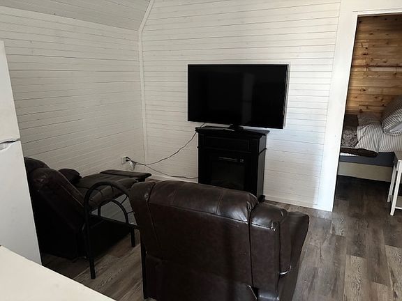 This is a 40' long cabin built in 2024. In its 750 sq. feet it has one bedroom and one bathroom. The home is fully furnished as pictured. Has recliners, big screen tv with free channels, hot water on demand and free laundry.