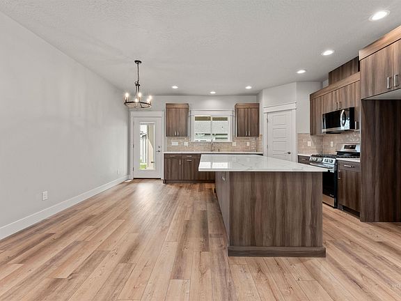 Outstanding new construction home with neutral finishes in Pheasant Meadows! This beautifully designed residence offers a spacious open-concept layout with durable LVP flooring, a stunning stone fireplace, and a chef’s kitchen featuring stainless steel appliances, a large prep island, and tile backsplash. The main-level primary suite is a luxurious retreat with a freestanding soaking tub, dual vanities, and a generous walk-in closet with direct laundry room access. Two additional bedrooms are also on the main floor, while the upper level includes two more bedrooms and a central family room—perfect for guests or flexible living. Outdoor enthusiasts will appreciate the additional garage space, ideal for recreational vehicles, additional parking, or extra storage.