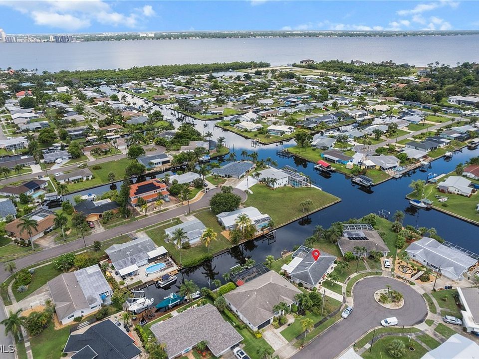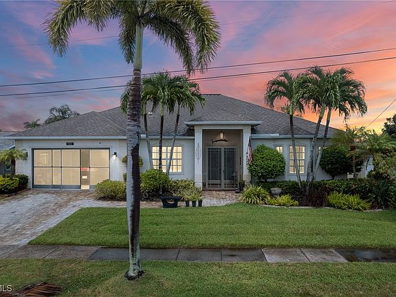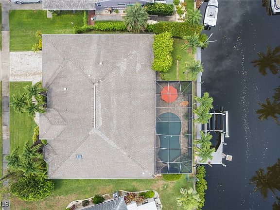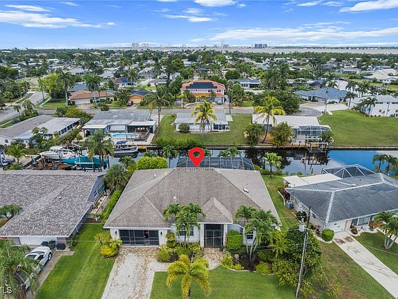 Tucked away on a quiet cul-de-sac, this custom-built, direct Gulf access pool home offers the ultimate in Southwest Florida waterfront living—with no bridges to open water and no compromises on quality or design. Spanning 2,257 square feet of living space, the four-bedroom, two-bath home features a spacious great room layout with rich wood flooring, 10-foot ceilings, and elegant tray accents. The home also includes impact-rated windows and doors. At the heart of the open great room layout, the island kitchen is outfitted for serious cooking and entertaining, featuring a built-in Sub-Zero refrigerator, Wolf gas range, wine refrigerator, walk-in pantry, and high-end finishes. Sliders and French doors open to the screen-enclosed pool area, where you’ll find a heated saltwater pool, outdoor kitchen, and a large under-truss lanai—perfect for shaded lounging and outdoor dining. The primary suite offers a private retreat with a spacious bath, including dual vanities, a walk-in shower, and a separate soaking tub. It is connected to public water and sewer, while the irrigation system runs on a separate well to keep the tropical landscaping lush and green. Additional upgrades include a 10,000-pound boat lift, a fenced backyard. Best of all, this home has never flooded—not even during recent hurricanes.